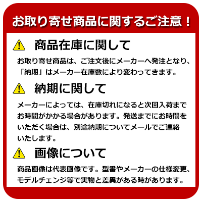 納期確認後、2営業日以内にご連絡いたします(*土日祝日除く) *メーカーの在庫状況により、かなりお時間がかかる場合があります。